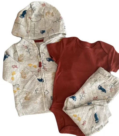 Conjunto 3 Peças Casaco Algodão Floresta Carter’s é a escolha ideal para bebês de 12 meses.