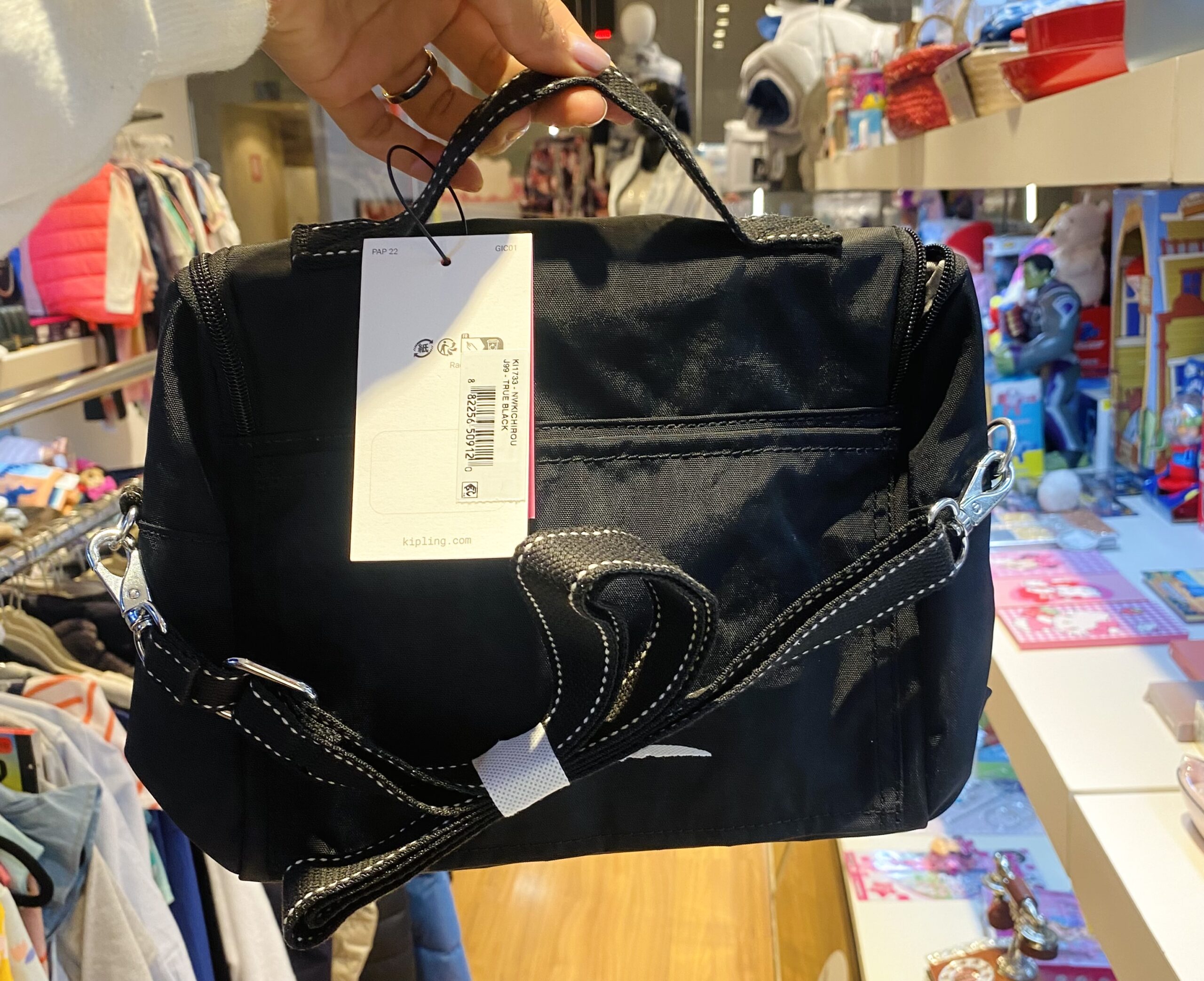 Vem com o icônico chaveiro de macaco da Kipling, que dá um toque divertido e autêntico à peça.